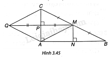 Cho tam giác ABC vuông tại A. Gọi M là trung điểm của BC còn P, N lần lượt là chân đường vuông góc hạ từ M xuống CA, AB (H.3.45).