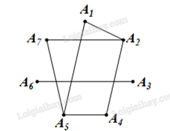 Ta vẽ đồ thị G có 7 đỉnh \({A_1};{\rm{ }}{A_2};{\rm{ }}{A_3};{\rm{ }}{A_4};{\rm{ }}{A_5};{\rm{ }}{A_6};{\rm{ }}{A_7}\;\) biểu diễn bảy số trong tập hợp số V.