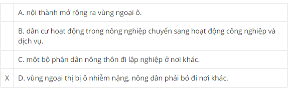 D. vùng ngoại thị bị ô nhiễm nặng, nông dân phải bỏ đi nơi khác.