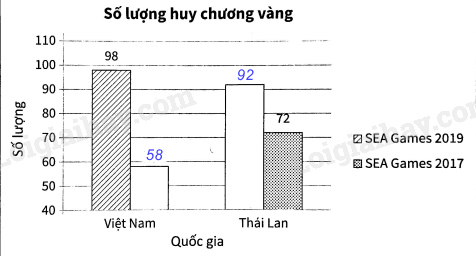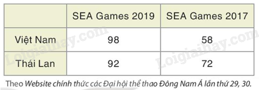 Bảng thống kê sau biểu diễn số huy chương vàng trong hai kì SEA Games năm 2017 và 2019 của đoàn thể thao Việt Nam, Thái Lan.
