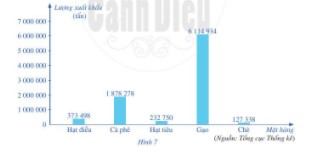 Biểu đồ ở Hình 7 cho biết lượng xuất khẩu của một số mặt hàng chủ yếu ở Việt Nam năm 2018. a)Tính theo tấn tổng lượng xuất khẩu của năm mặt hàng trên. b)Lượng gạo xuất khẩu nhiều hơn tổng lượng xuất khẩu của bốn mặt hàng còn lại là bao nhiêu tấn?