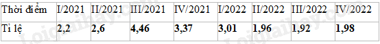 Bảng thống kê biểu diễn tỉ lệ thất nghiệp (đơn vị tính là %):
