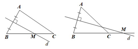c) Tam giác ABC vuông tại B thì d // BC nên không tìm được M (hình vẽ):