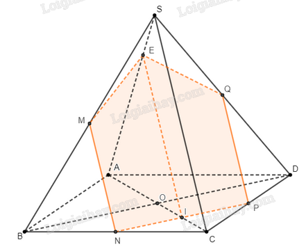 c) Gọi \(I\) là giao điểm của \(NP\) và \(AC\). Trên cạnh \(SA\) lấy \(E\) sao cho \(IE\parallel SC\).