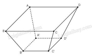 Giả sử khay b có hình dạng chóp cụt tứ giác đều \(ABCD.A’B’C’D’\) như hình vẽ dưới đây (với \(A’B’C’D’\) là đáy bé).