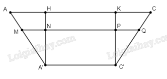 Xét hình thang cân \(ACC’A’\), gọi \(H\) và \(K\) lần lượt là hình chiếu của \(A’\) và \(C’\) trên \(AC\). Trên \(C’K\), lấy điểm \(P\) sao cho \(\frac{{C’P}}{{C’K}} = \frac{2}{3}\). Đường thẳng qua \(P\) và song song với \(AC\) cắt \(AA’\), \(A’H\), \(C’C\) lần lượt tại \(M\), \(N\) và \(Q\).