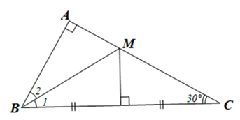 Cho tam giác ABC vuông tại A có \(\hat C = 30^\circ \). Đường trung trực của BC cắt AC tại M. Chứng minh: