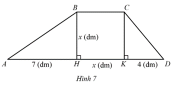 Tính diện tích của hình thang ABCD với các số đo cho như Hình 7 theo x.