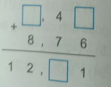 Vì số chữ số ở phần thập phân là như nhau nên ta có thể bỏ đi dấu phẩy và đưa bài toán trở thành: \(\overline {a4b}  + 876 = \overline {12c1} \)(\(a,b,c \in N;0 < a \le 9;0 \le b,c \le 9\))