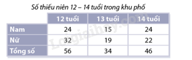 Để tổ chức sinh hoạt hè cho thiếu niên, khu phố 1 muốn xác định môn thể thao được nhiều em ở lứa tuổi 12-14 yêu thích. Số thiếu niên thuộc lứa tuổi này trong khu phố được thống kê ở bảng sau: