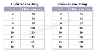 Mẹ của Hùng và Hoàng đã theo dõi chiều cao của hai anh em từ lúc sinh ra đến lúc trưởng thành và ghi lại trong hai bảng sau: