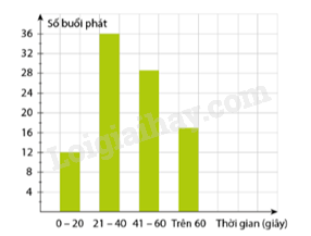Anh Phúc đã khảo sát thời lượng quảng cáo trên ti vi (tính bằng giây) qua một số buổi phát lấy ngẫu nhiên và biểu diễn kết quả khảo sát bằng biểu đồ dưới đây: