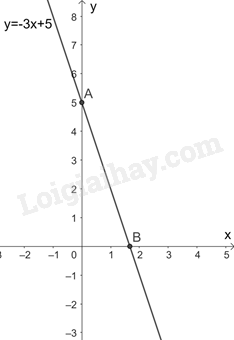 b) Đồ thị hàm số \(y =  – 3x + 5\) đi qua hai điểm \(A\left( {0;5} \right),B\left( {\frac{5}{3};0} \right)\)