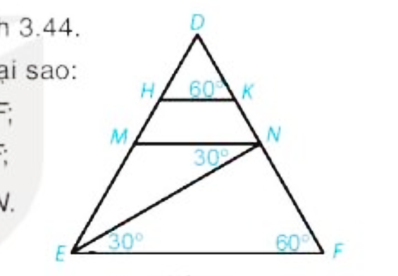 Bài 7 (3.23). Cho hình 3.16. Giải thích tại sao: a) MN // EF b) HK // EF c) HK // MN