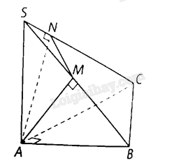 tam giác \(SAC\) vuông tại \(A\), đường cao \(AN\) nên \(\frac{{SN}}{{SC}} = \frac{{SN \cdot SC}}{{S{C^2}}} = \frac{{S{A^2}}}{{S{C^2}}} = \frac{1}{4}\).