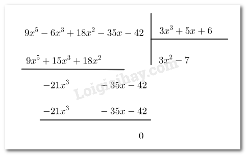 \(b)\left( {9{x^5} – 6{x^3} + 18{x^2} – 35x – 42} \right):\left( {3{x^3} + 5x + 6} \right);\)