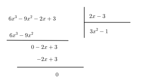 \(c)\left[ {\left( {6{x^3} – 5{x^2} – 8x + 5} \right) – \left( {4{x^2} – 6x + 2} \right)} \right]:\left( {2x – 3} \right).\)