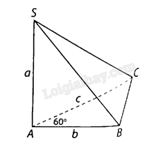 Khi đó \({V_{S.ABC}} = \frac{1}{3} \cdot {S_{ABC}} \cdot SA = \frac{1}{3} \cdot \frac{1}{2} \cdot bc \cdot {\rm{sin}}{60^ \circ } \cdot a = \frac{{abc\sqrt 3 }}{{12}}\)
