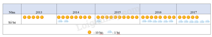 a) Vẽ biểu đồ tranh biểu diễn số bé học lớp mầm của trường trong mỗi năm, từ \(2013\) đến \(2017.\)