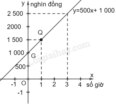 b) Đồ thị hàm số \(y = 1\;000 + 500x\) (nghìn đồng) đi qua điểm \(G\left( {0;\;1000} \right)\) và điểm \(Q\left( {1;\;1\;500} \right)\)