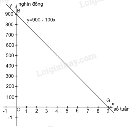 b) Đồ thị hàm số: \(y = 900 – 100x\) (nghìn đồng) đi qua hai điểm B(0; 900) và G(9; 0)