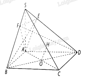 c) Gọi \(O\) là giao điểm của \(AC\) và \(BD\), kẻ \(OH \bot SC\) tại \(H\), mà \(BD \bot \left( {SAC} \right)\) nên \(OH \bot BD\), suy ra \(OH\) là đoạn vuông góc chung của \(BD\) và \(SC\), hay \(d\left( {BD,SC} \right) = OH\)