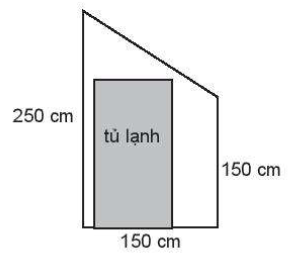 Nhà bạn Nam định đổi tủ lạnh và dự định kê vào vị trí dưới cầu thang. Biết vị trí kê tủ lạnh có mặt cát là một hình thang vuông với hai đáy lần lượt là 150 cm và 250 cm, chiều cao là 150 cm (như hình vẽ). Bố mẹ Nam định mua một tủ lạnh 2 cánh (Slide by slide) có chiều cao là 183 cm và bề ngang 90 cm. Bằng cách sử dụng tọa độ trong mặt phẳng, em hãy giúp Nam tính xem bố mẹ Nam có thể kê vừa chiếc tủ lạnh vào vị trí cần kê không?
