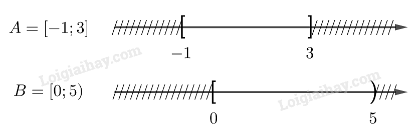 Cho các tập con \(A = \left[ { – 1;3} \right]\) và \(B = \left[ {0;5} \right)\) của tập số thực \(\mathbb{R}\)