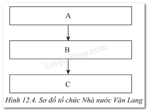 Đặt các từ ngữ cho sẵn vào các ô A, B, C để hoàn thành sơ đồ tổ chức Nhà nước Văn Lang. (1) 15 Bộ (Đứng đầu mỗi bộ là Lạc tướng), (2) Chiềng, chạ (Đứng đầu là Bồ chính); (3) Hùng Vương (Nắm mọi quyền hành, giúp việc có các Lạc hầu).