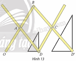 Tìm các tỉ số vị tự của phép biến hình được thực hiện trên cây thước vẽ truyền trong Hình 13.