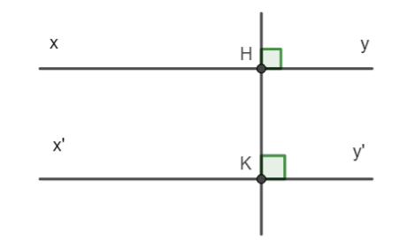 Ta có \(xy \bot HK\) và \(x’y’ \bot HK\) nên xy // x’y’ ( dấu hiệu nhận biết hai đường thẳng song song).