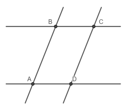 B) Có tất cả 2 cặp đường thẳng song song là AB và CD, BC và AD.