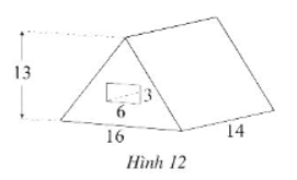 Một khối bê tông hình lăng trụ đứng tam giác, bên trong khoét một cái lỗ có kích thước như Hình 12 (đơn vị dm). Tính thể tích của khối bê tông.