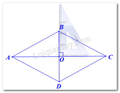 Cho hình thoi ABCD có O là giao điểm của hai đường chéo. Hãy dùng êke để tìm tia phân giác của các góc \(\widehat {AOC}\) và \(\widehat {BOD}\)