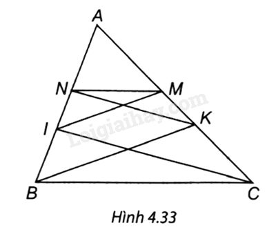 Cho tam giác ABC, điểm I thuộc cạnh AB, điểm K thuộc cạnh AC. Kẻ IM song song với BK (M thuộc AC), kẻ KN song song với CI (N thuộc AB). Chứng minh MN song song với BC.