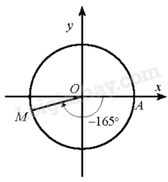 a) Ta có: \( – {1965^0} =  – {165^0} + \left( { – 5} \right){.360^0}\). Do đó, điểm biểu diễn góc lượng giác có số đo \( – {1965^0}\) là điểm M trên đường tròn lượng giác thuộc góc phần tư thứ III sao cho \(\widehat {AOM} = {165^0}\) như hình vẽ.