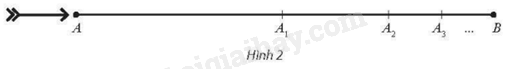 Biết rằng, từ vị trí A, một mũi tên bay với tốc độ 10m/s hướng thẳng tới bia mục tiêu đặt ở vị trí B cách vị trí A một khoảng bằng 10m (Hình 2). Một nhà thông thái lập luận như sau: “Để đến được B, trước hết mũi tên phải đến trung điểm \({A_1}\) của AB. Tiếp theo, nó phải đến trung điểm \({A_2}\) của \({A_1}B\). Tiếp nữa, nó phải đi đến trung điểm \({A_3}\) của \({A_2}B\). Cứ tiếp tục như vậy, vì không bao giờ hết các trung điểm nên mũi tên không thể đến được mục tiêu ở B”.