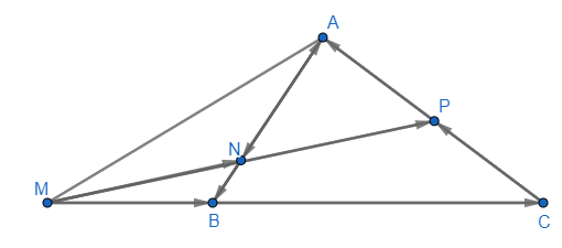 a)  Xác định các điểm M, N, P thỏa mãn: \(\overrightarrow {MB}  = \frac{1}{2}\overrightarrow {BC} ,\overrightarrow {AN}  = 3\overrightarrow {NB} ,\overrightarrow {CP}  = \overrightarrow {PA} \)