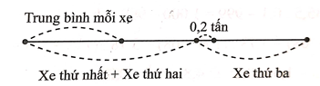 Ba xe ô tô chở gạo: xe thứ nhất chở 4,3 tấn, xe thứ hai chở được 3,5 tấn, xe thứ ba chở hơn mức trung bình của cả 3 xe là 0,2 tấn.
