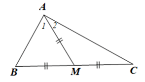 Ta có: \(AM = \frac{1}{2}BC, BM = MC\) nên \(AM = BM = MC\).