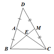 b) Trong tam giác BCD có CA và BM là hai đường trung tuyến nên BM cắt CA tại trọng tâm của tam giác.