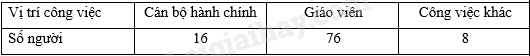 Khảo sát vị trí công việc của 100 cán bộ công tác trong ngành giáo dục tại quận X, thu được kết quả như bảng sau: