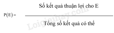 + Sử dụng kiến thức về cách tính xác suất của biến cố bằng tỉ số để tính: Giả thiết rằng các kết quả có thể của một hành động hay thực nghiệm là đồng khả năng. Khi đó, xác suất của biến cố E, kí hiệu là P(E), bằng tỉ số giữa số kết quả thuận lợi cho biến cố E và tổng số kết quả có thể: