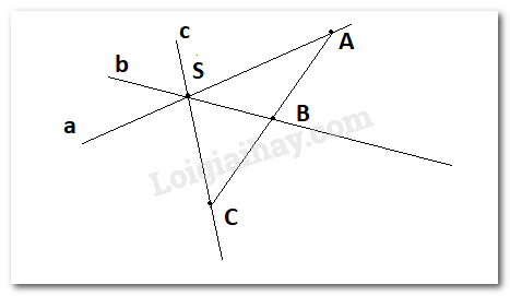 Vẽ hình thể hiện các quan hệ: Ba đường thẳng a,b,c cùng đi qua điểm S; Ba điểm A thuộc a, B thuộc b, C thuộc c thẳng hàng.