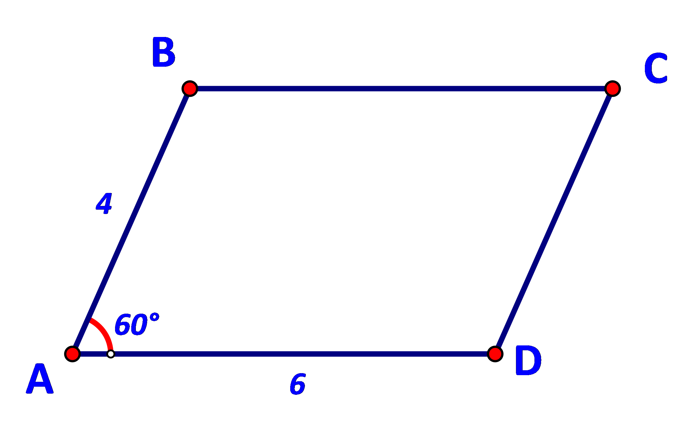Cho hình bình hành ABCD có AB = 4, AD = 6, \(\widehat {BAD} = {60^o}\) (Hình 73).
