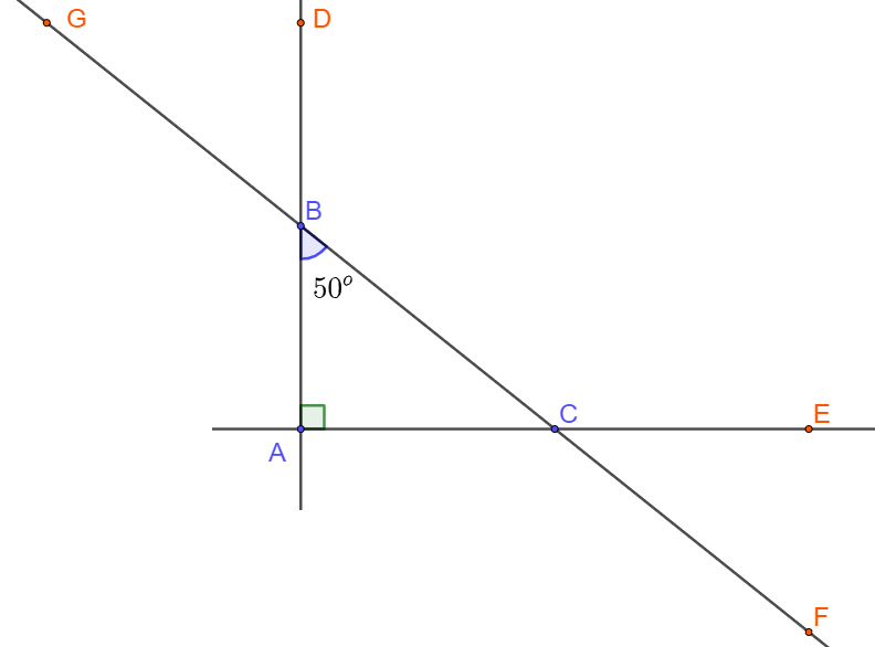 + \(\left( {\overrightarrow {BC} ,\overrightarrow {AC} } \right) = (\overrightarrow {CF} ,\overrightarrow {CE}) =  \widehat {ECF} =40^\circ \) => B đúng