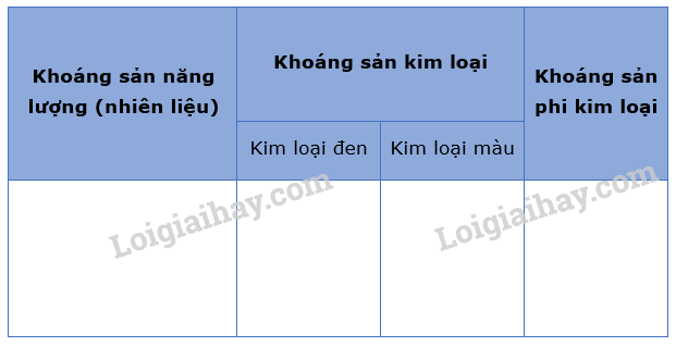 a) Sắp xếp các khoáng sản trong bảng chú giải vào các nhóm theo mẫu sau: