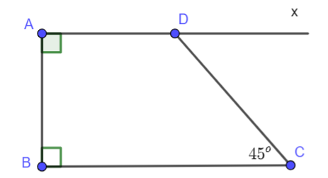 Suy ra \(\widehat {CDx} = \widehat {DCB} = {45^o}\)(hai góc so le trong)