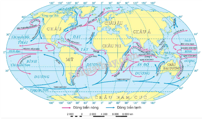 Hình 3. Các dòng biển trong đại dương thế giới