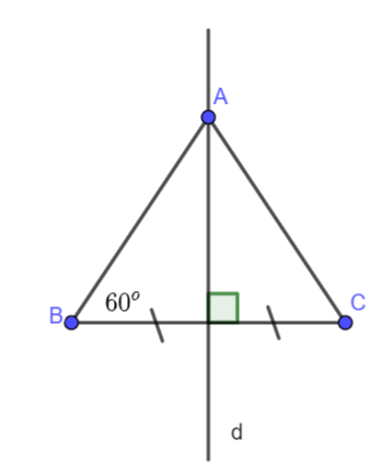 d là trung trực BC, \(A \in BC,\widehat {ABC} = {60^o}\)